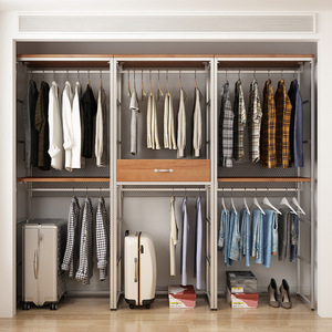金属衣柜全实木新款2025爆款卧室家用铁艺钢架结构转角衣帽间