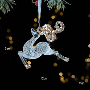跨境新品圣诞节装饰品圣诞树香槟亮片闪粉透明亚克力雪花铃铛挂件