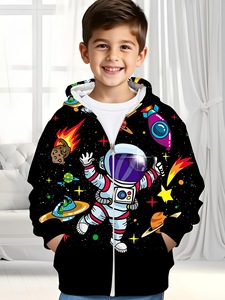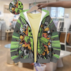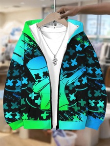 炫酷2025时尚潮流休闲百搭高品质绿色男童装连帽拉链外套