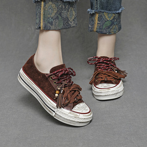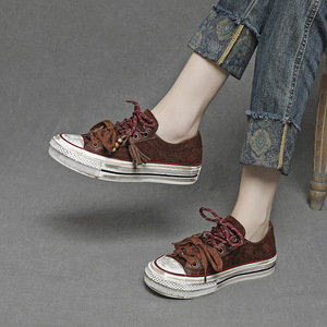 头层牛皮2025秋季新款做旧擦色脏脏鞋女平底系带百搭休闲板鞋女鞋