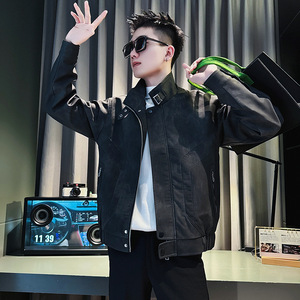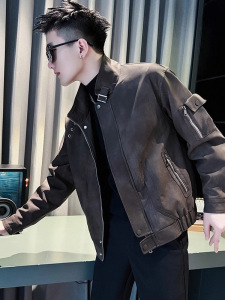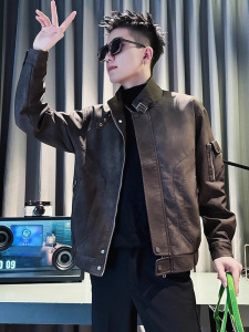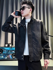 男士外套春秋款潮牌痞帅立领工装皮衣男款2025新款休闲短款皮夹克