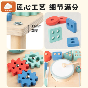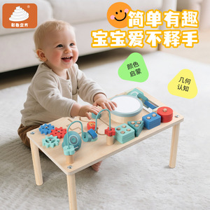 蒙氏早教忙碌桌木质忙碌板大号绕珠婴幼儿多功能游戏桌益智玩具
