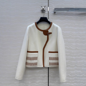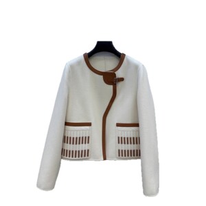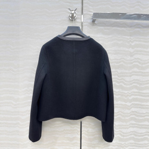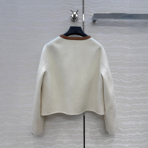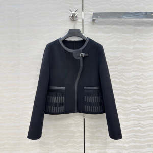 气质优雅风干练显瘦高挑皮革拼接刺绣口袋双面尼羊绒马术夹克外套
