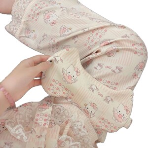 【现货】蕾丝边可爱Kitty猫冰丝睡衣女夏季大码亲肤宽松长裤套装