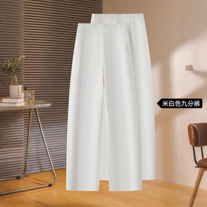 藏青色阔腿裤女秋季2025新款宽松显瘦九分直筒裤小个子休闲运动裤