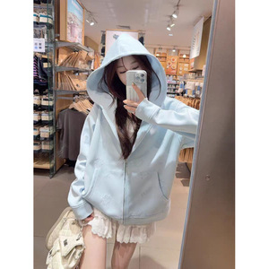 连帽刺绣长袖原版猫咪甜美风粉色卫衣女秋季别致减龄宽松显瘦上衣