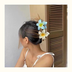 8cm欧美鸡蛋花抓夹甜美鲨鱼夹度假风丸子头盘发夹发抓发饰批发女