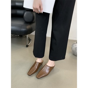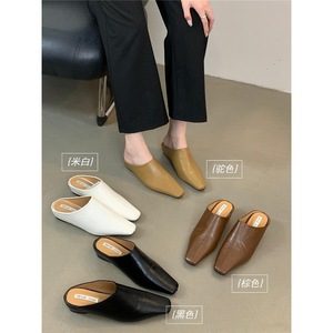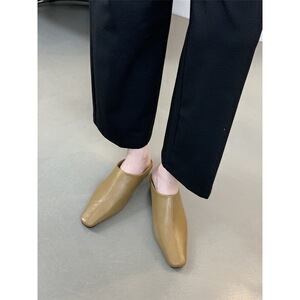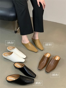 懒人半拖鞋女鞋子2025秋新品韩国内增高复古小女人方头外穿穆勒鞋