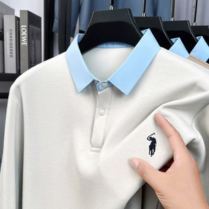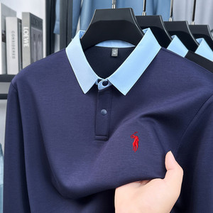 春秋长袖T恤男士棉t时尚绣花长袖Polo衫商务休闲百搭抗皱免烫打底