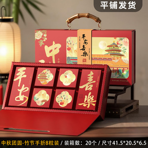 月饼盒空盒;【中秋团圆】竹节手提8粒硬盒