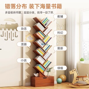 简约树形书架置物架落地卧室靠墙简易小型书柜创意现代收纳窄柜子