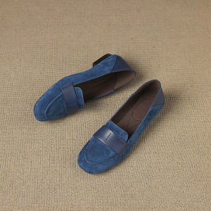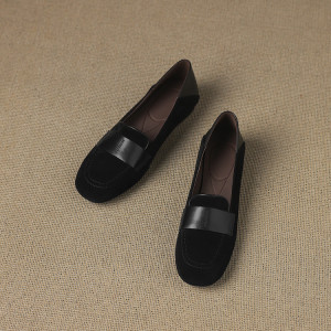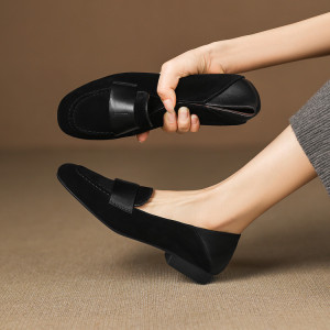 2025秋季新款复古羊反绒低跟乐福鞋女鞋时装鞋粗跟简约通勤鞋单鞋