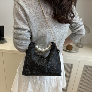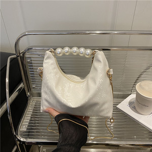 新款精致链条唯美休闲气质简约夏季珍珠手提包单肩斜挎包女士包