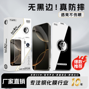 适用苹果17无边钢化膜16promax高清膜15手机膜14全屏白片厚胶大弧