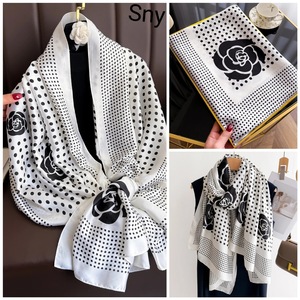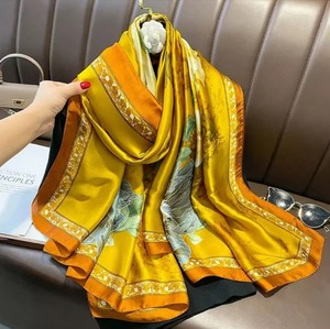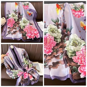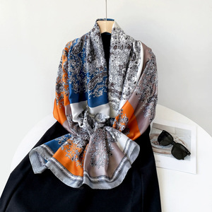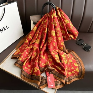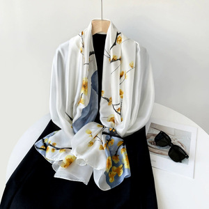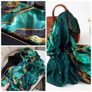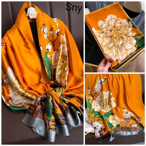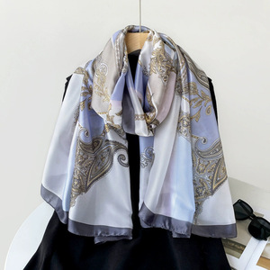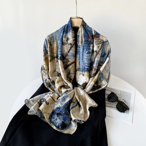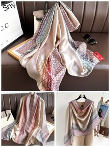 春夏薄款丝巾高级感印花长巾新款缎面旅游防晒纱巾民族风披肩