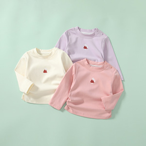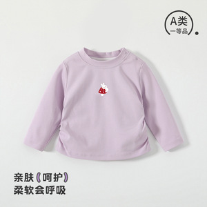 女宝秋款长袖t恤2025新款纯色洋气圆领上衣公主款a类婴幼儿打底衫