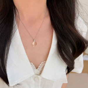 蒂奇S925纯银天然白水晶项链女气质时尚清透圆球锁骨链小红书爆款