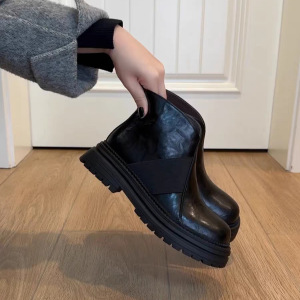 软皮版~2025秋季复古马丁靴侧拉链厚底粗跟百搭小短靴黑色靴子女