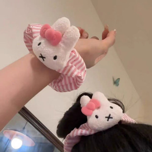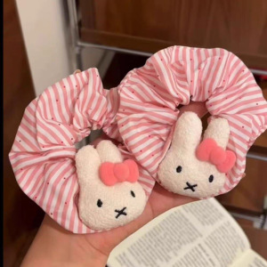 甜美粉色蝴蝶结米菲兔条纹大肠圈韩系可爱丸子头皮筋儿童发圈头绳