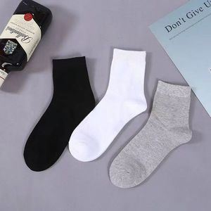 新款袜子男中筒男袜四季透气吸汗黑白软袜子纯色运动袜男中筒袜子