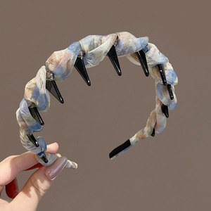 2025新款彩纱齿梳发箍高颅顶日常外戴头箍洗脸防滑压发百搭发饰女
