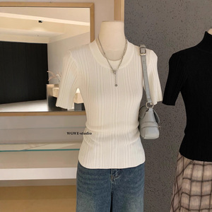 【WGWE】老钱风冰麻圆领针织正肩修身显瘦针织衫 W6829#