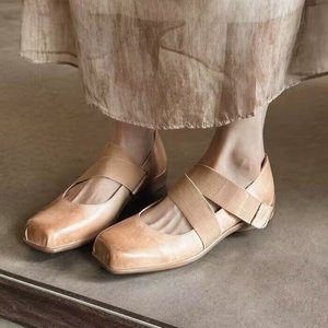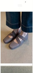 芈祐 复古画廊~!秋款交叉带平底芭蕾舞鞋女方头浅口玛丽珍单鞋
