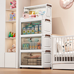 翻盖收纳柜家用简易多层折叠塑料柜大容量零食杂物衣服玩具储物箱