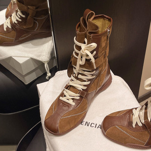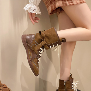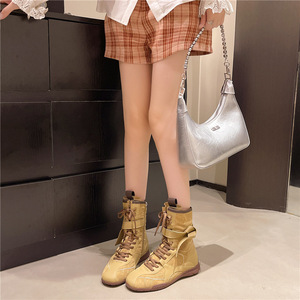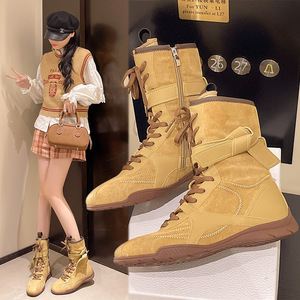 2025新款拳击靴女前系带时尚舒适中筒靴英伦风设计感小众马丁靴潮