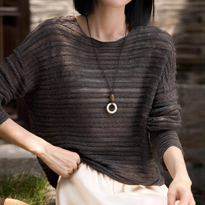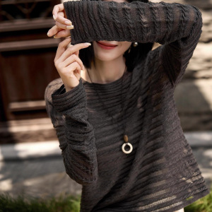 欧货高端雅致2025夏新韩版舒适长袖针织衫轻薄透气冰丝罩衫上衣女