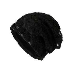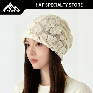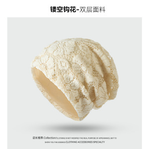 纯色镂空花朵针织堆堆帽秋冬简约保暖防寒双层月子帽钩花包头帽