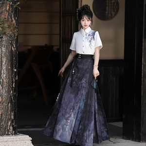 原创设计画影汉服女中国风改良汉元素衬衣马面裙套装6935