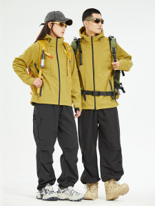 迪某特同款户外软壳衣男冲锋衣女秋冬防水运动保暖加绒夹克外套