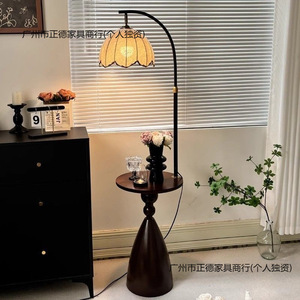新款中古风客厅落地灯置物架一体沙发灯卧室床头柜氛围感落地台灯