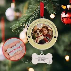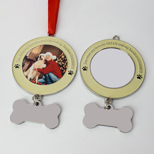 跨境新款双面圆形空白骨头热升华宠物身份牌圣诞挂件金属装饰品