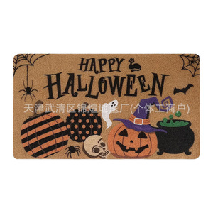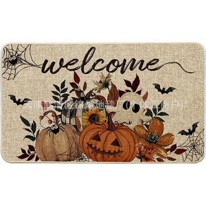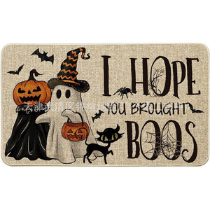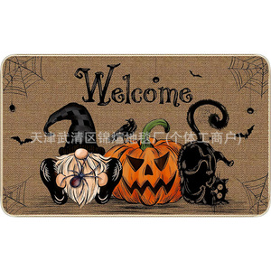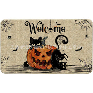 跨境万圣节亚麻橡胶地垫玄关入户耐脏耐磨门垫浴室吸水防滑蹭脚垫