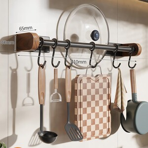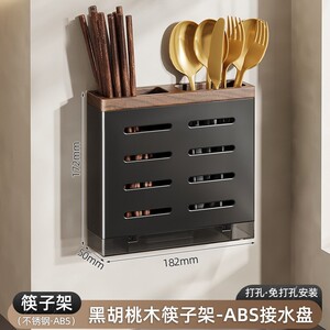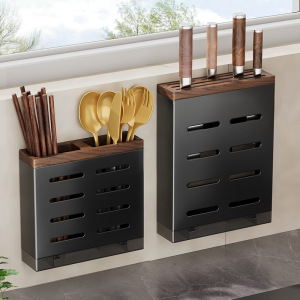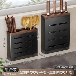胡桃木刀架置物架厨房多功能菜刀架免打孔壁挂一体收纳筷子筒刀架