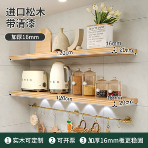厨房墙上实木隔板一字板置物架墙壁木板搁板壁挂式墙面碗碟收