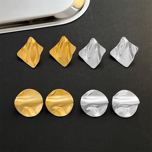 跨境新款钛钢褶皱几何耳环ins风欧美复古光面不规则耳环中古耳饰