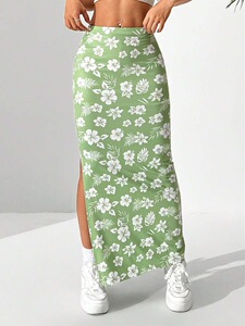 跨境2025年新款欧美时尚女装亚马逊雏菊花卉印花开衩紧身半身裙