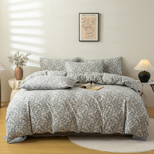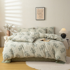 秋冬复古风高端提花水洗亚麻原麻棉麻床单四件套床笠被罩床上用品
