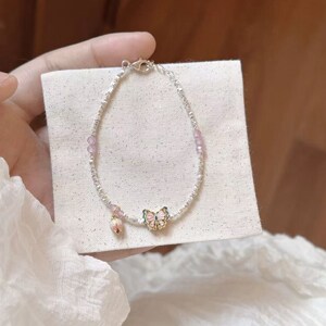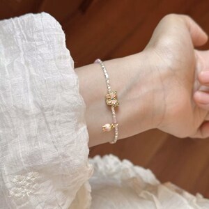 小红书同款珐琅郁金香蝴蝶碎银子手链精致时尚百搭小众设计送闺蜜