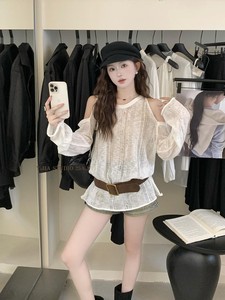 Y.JIA伊嘉2025秋季设计感露肩长䄂防晒罩衫针织衫上衣女(配腰带)