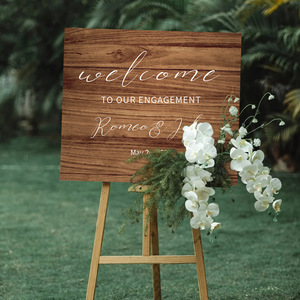 订婚定制款迎宾牌婚礼场景布置装饰路引仿真木质木纹kt板展架水牌