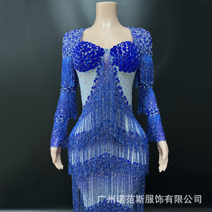 轻奢优雅水钻细闪流苏渐变网纱长裙红毯走秀歌手宴会俱乐部晚礼服
