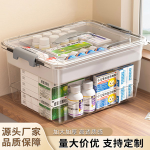桌面便捷手提pp透明药箱急救药物分类收纳盒多层大容量透明医药箱