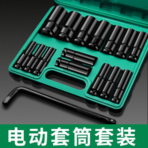 加长电动扳手套筒全套电组合套装大中小风炮头电板子工具