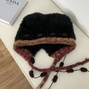 日系保暖小熊毛绒帽2025冬爆款可爱风加厚时尚显脸小套头针织帽子