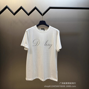 高版本D家25早秋新款闪银字印花短袖OS宽松时尚百搭欧美男女T恤