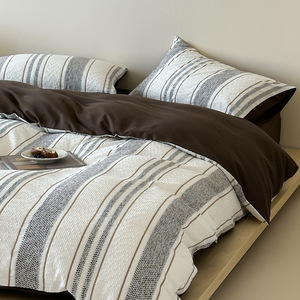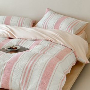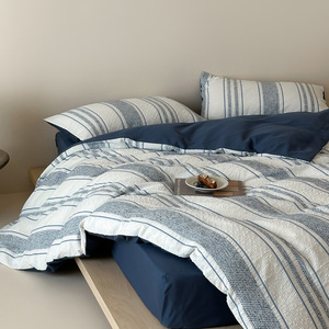 全棉穿线提花四件套学生宿舍单人纯棉被套床单三件套四季通用床品